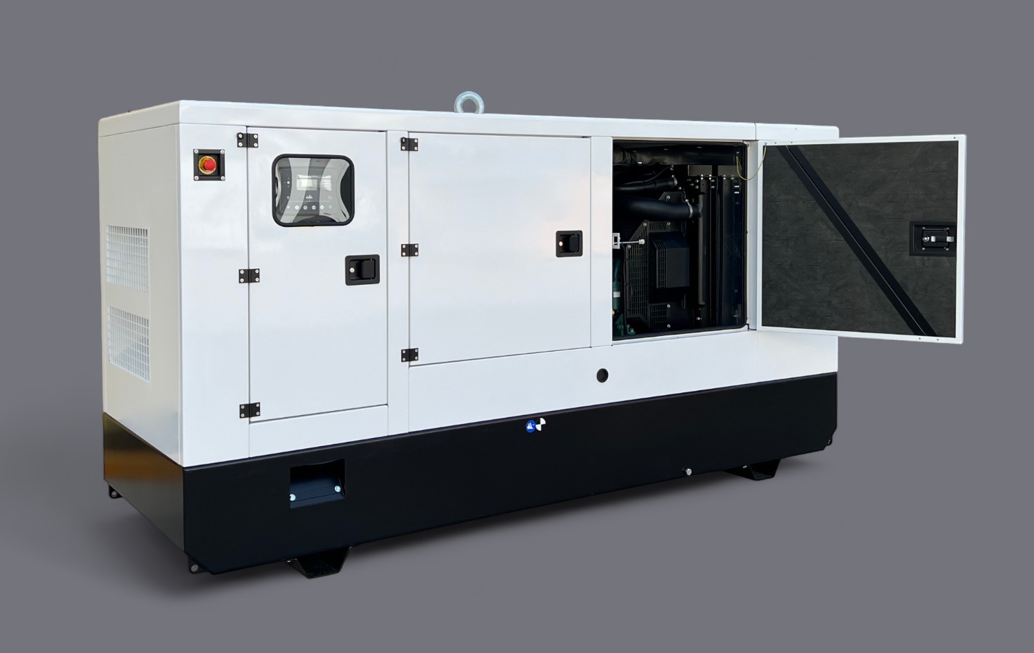 Grupo electrógeno de la gama Industrial, trifásico e insonorizado, con funcionamiento en modo automático, modo manual, por señal o en modo test. Una apuesta por la energía de calidad.