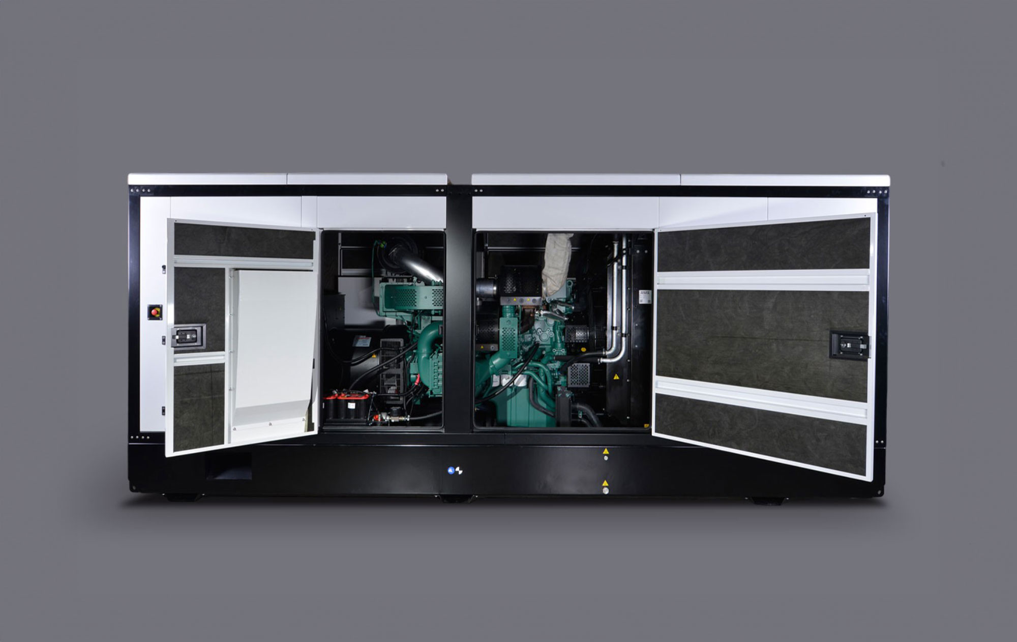 Grupo gerador de alta potência, trifásico e insonorizado, com funcionamento em modo automático, modo manual, por sinal ou em modo teste. Energia estelar sem limites, potência em estado puro.